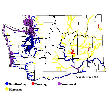 Double-crested Cormorants are permanent residents on the coasts and in Puget Sound. Migrants east of the Cascades depart in October and return in March. Some migrants move to the coast from inland areas.