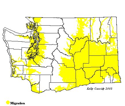 Migrants are much more common in Washington in fall than spring. Fall visitors start showing up in the interior in small numbers in late June. Their numbers increase into July and August, and by mid-August they are common. By late October, numbers start tapering off. They are uncommon by the end of October, and rare through most of November. Coastal birds start arriving in mid-July, but are uncommon through mid-August. From mid-August to October, they are common, then become uncommon again through early November. A few stragglers can sometimes be seen through the end of November. Most of these birds are juvenile.