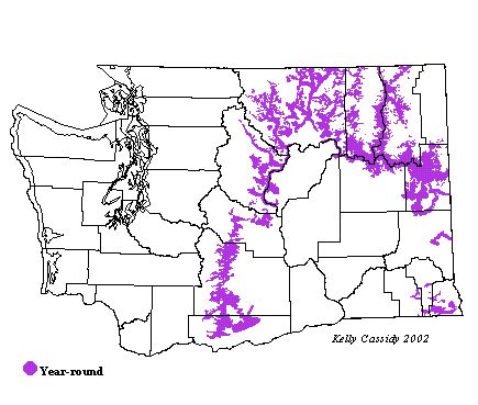Pygmy Nuthatches can be found year round in the Ponderosa pine forests of the eastern Cascade lowlands, up to middle elevations (especially near Wenas Creek in Yakima County), locally in the Blue Mountains, and in the Ponderosa pine belt fringing the north side of the Columbia Basin (especially in the Okanogan and in Spokane).